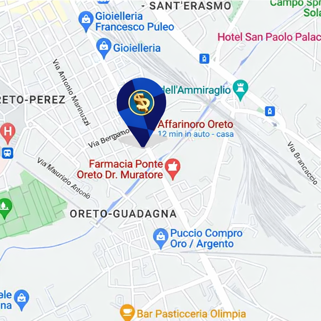 Affarinoro Compro Oro Palermo: Il Miglior Compro Oro della Città da Oltre 10 Anni Affidati alla nostra esperienza e professionalità per ottenere la valutazione più vantaggiosa per il tuo oro. Promozione Unica: Pesa il tuo oro, scarica il coupon e vieni in negozio. Riceverai un bonus del 10% sul valore del tuo oro, garantendo la massima convenienza.